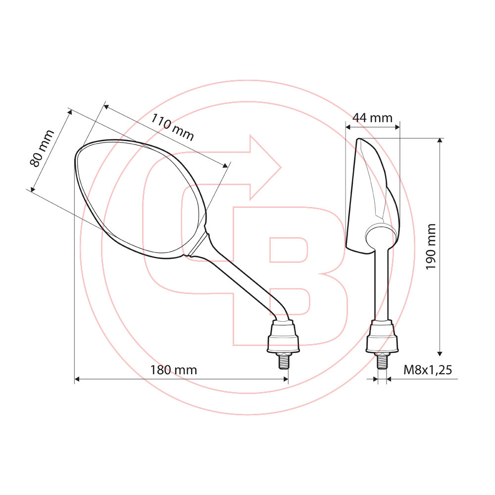 Tükör Lampa TORI menet M8x1,25 jobb (1pár)
