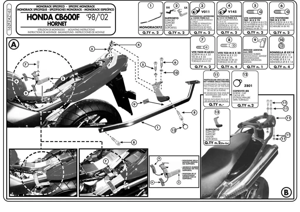 Csomagtartó alap Honda Hornet 600/S (CB600F) (98-02) GIVI