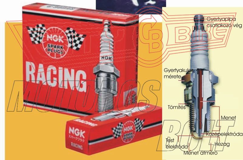 NGK verseny gyújtógyertya, az általános gyújtógyertyánál kisebb élettartam, de megbízhatóbb működést biztosít.