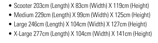 Méret: 246 x 104 x 127 cm