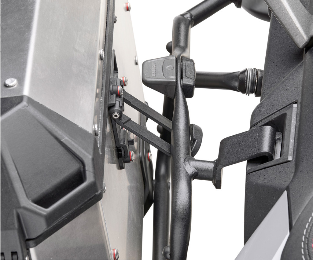 Az EVO SMART sorozat fejlesztései közé tartozik a Detachable Lid System, amelynek köszönhetően a fedél részben nyitható vagy teljesen leemelhető, illetve a Hold it Active System, amely lehetővé teszi a doboz megdöntését teljes levétel nélkül – különösen hasznos, ha hátsó doboz is van a motoron.