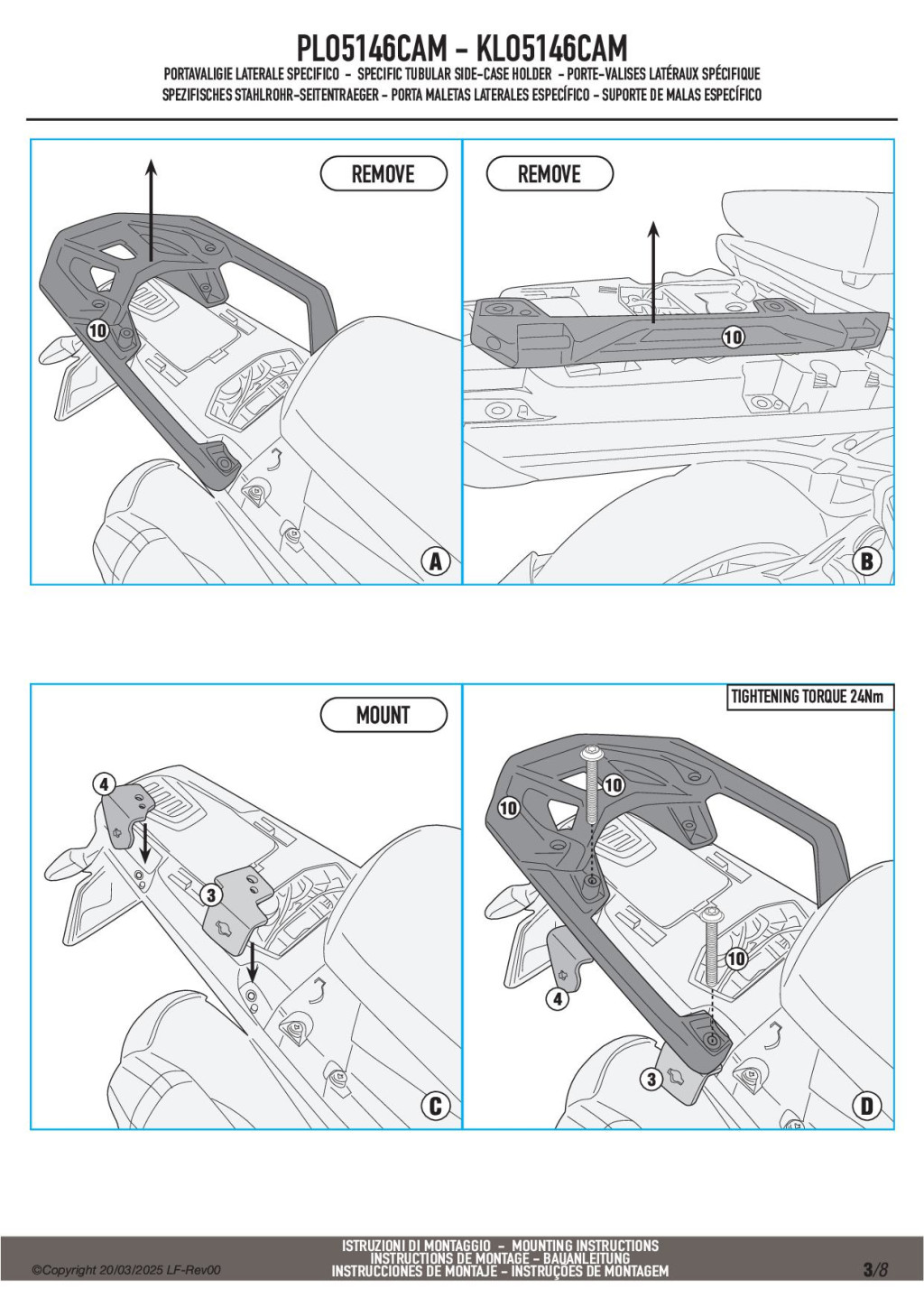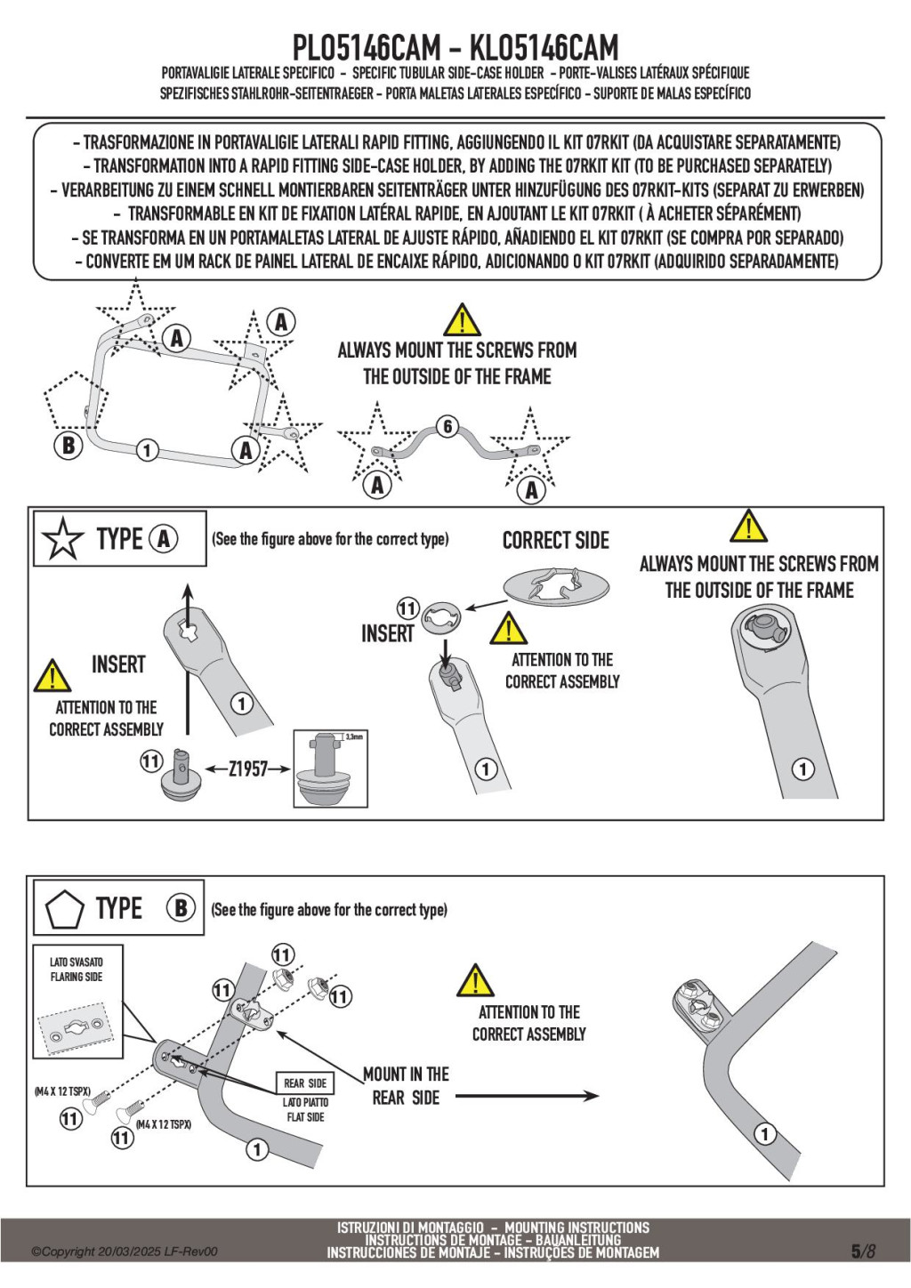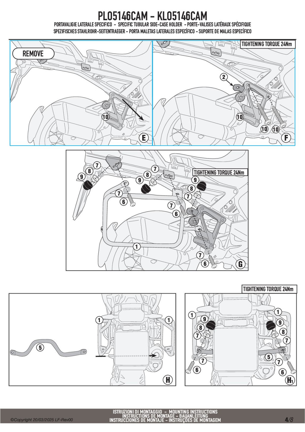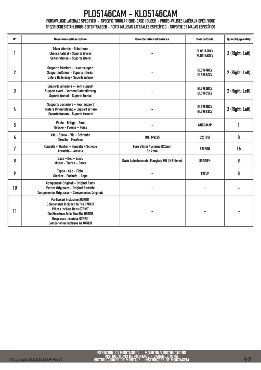 A GIVI PLO5146CAM megerősített acélcső vázzal készült oldaldoboz tartó, amely a Trekker Outback CAM-SIDE rendszerű alumínium dobozokhoz lett kifejlesztve.