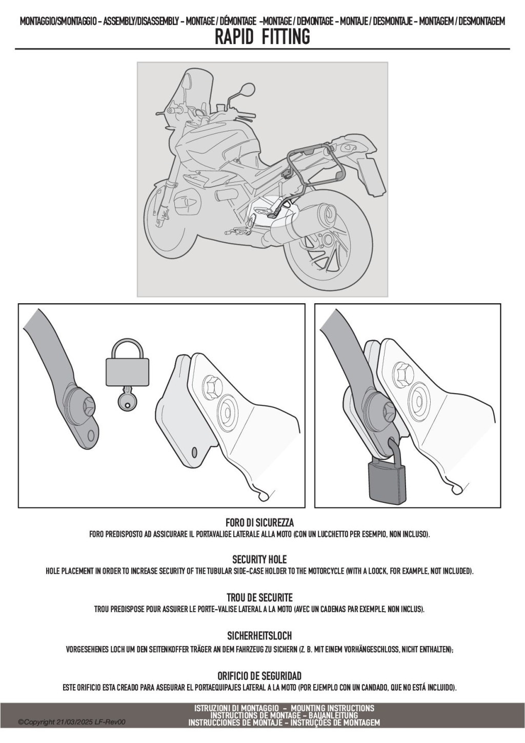 Ha szeretné használaton kívül gyorsan levenni ezt a tartót a motorról, akkor a külön megvásárolhat 07RKIT-el szerelje fel ezt a tartót.