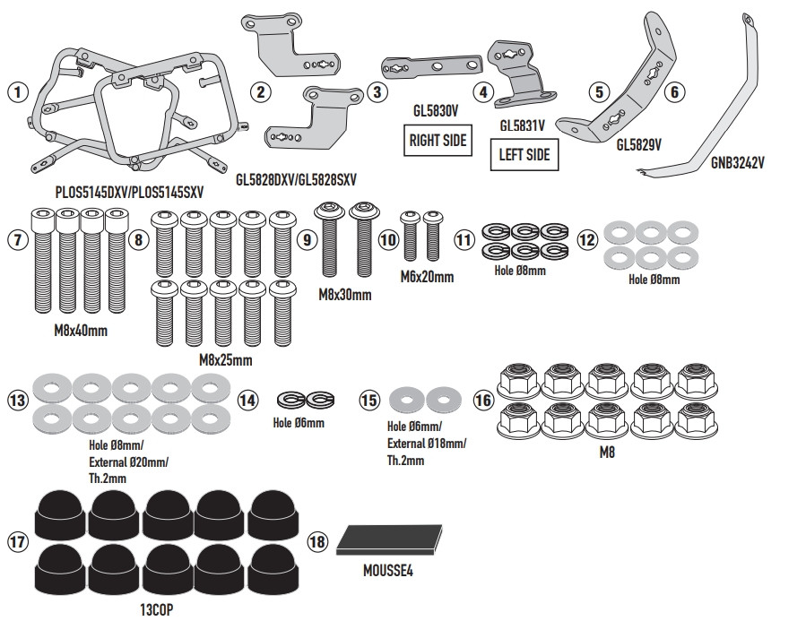 Ha nincs a motoron Givi  vagy Kappa hátsó doboztartó, akkor a 5145KIT is szükséges, amely külön vásárolható.