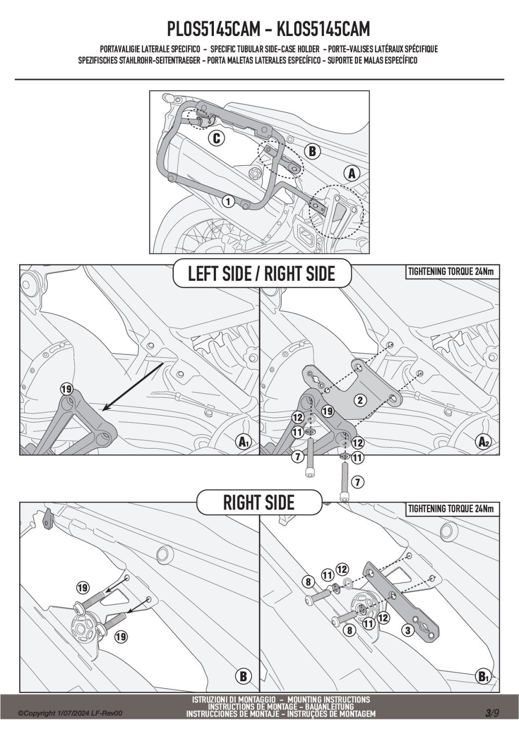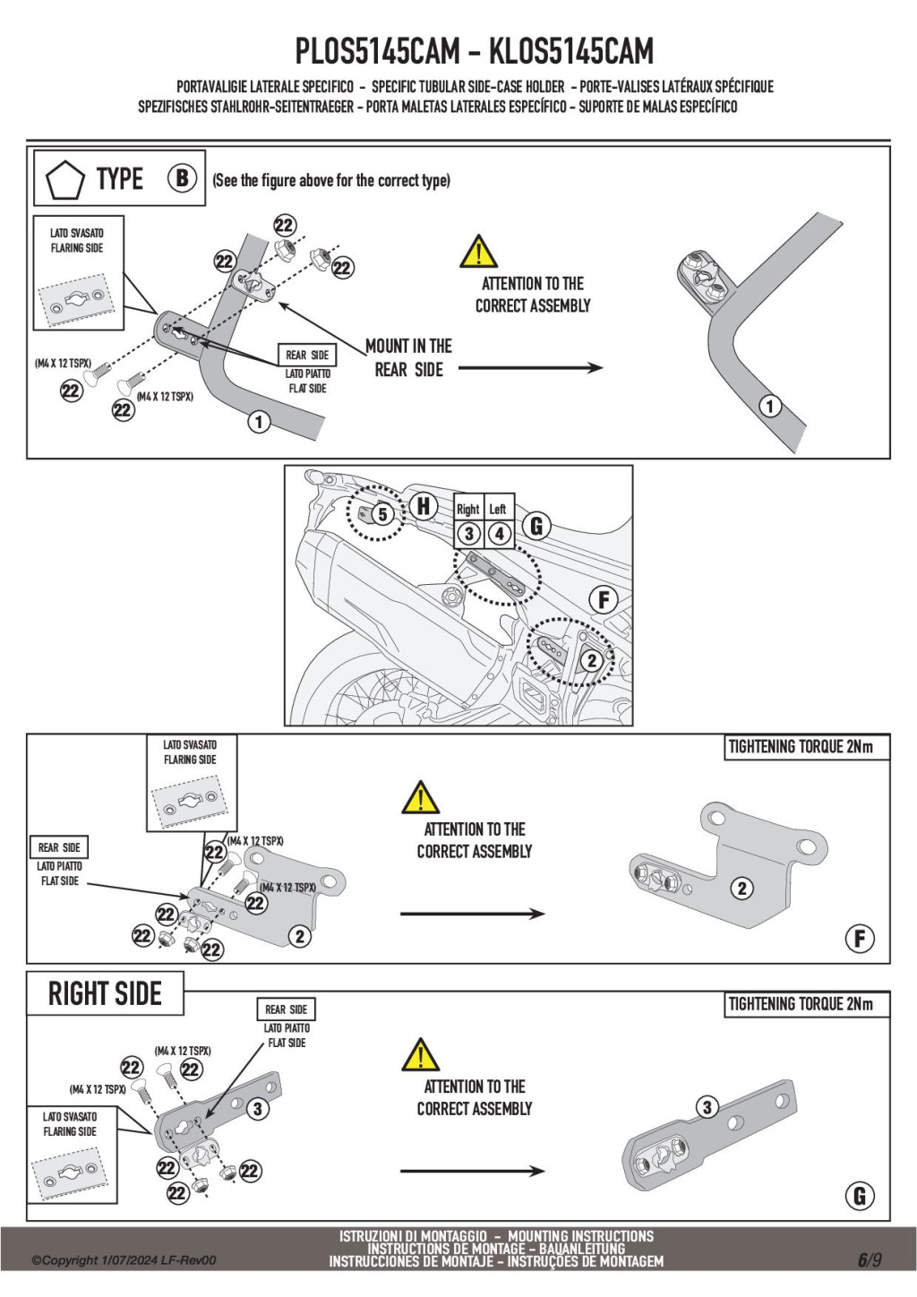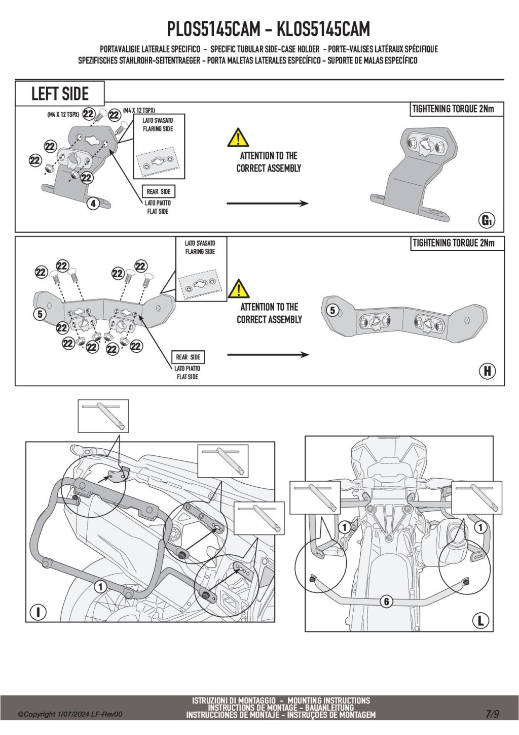 Ez az oldaldoboztartó csak akkor szerelhető fel a motorra, ha van már felszerelve Givi/ Kappa hátsó doboztartó is.