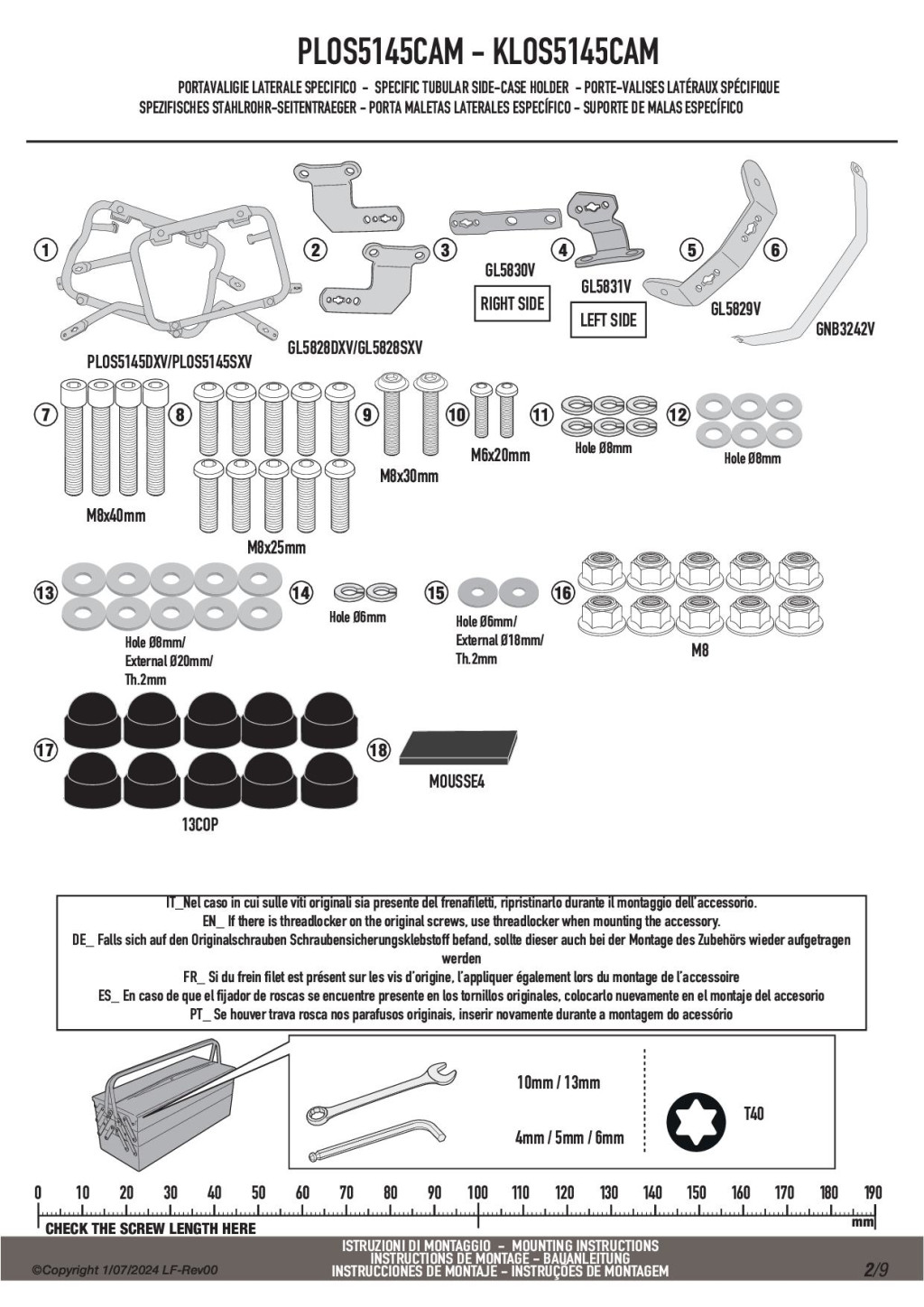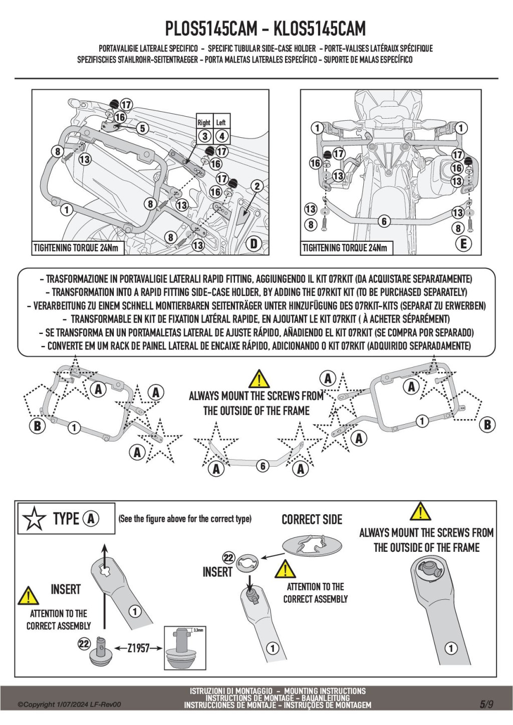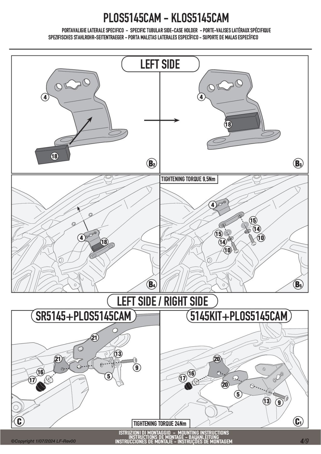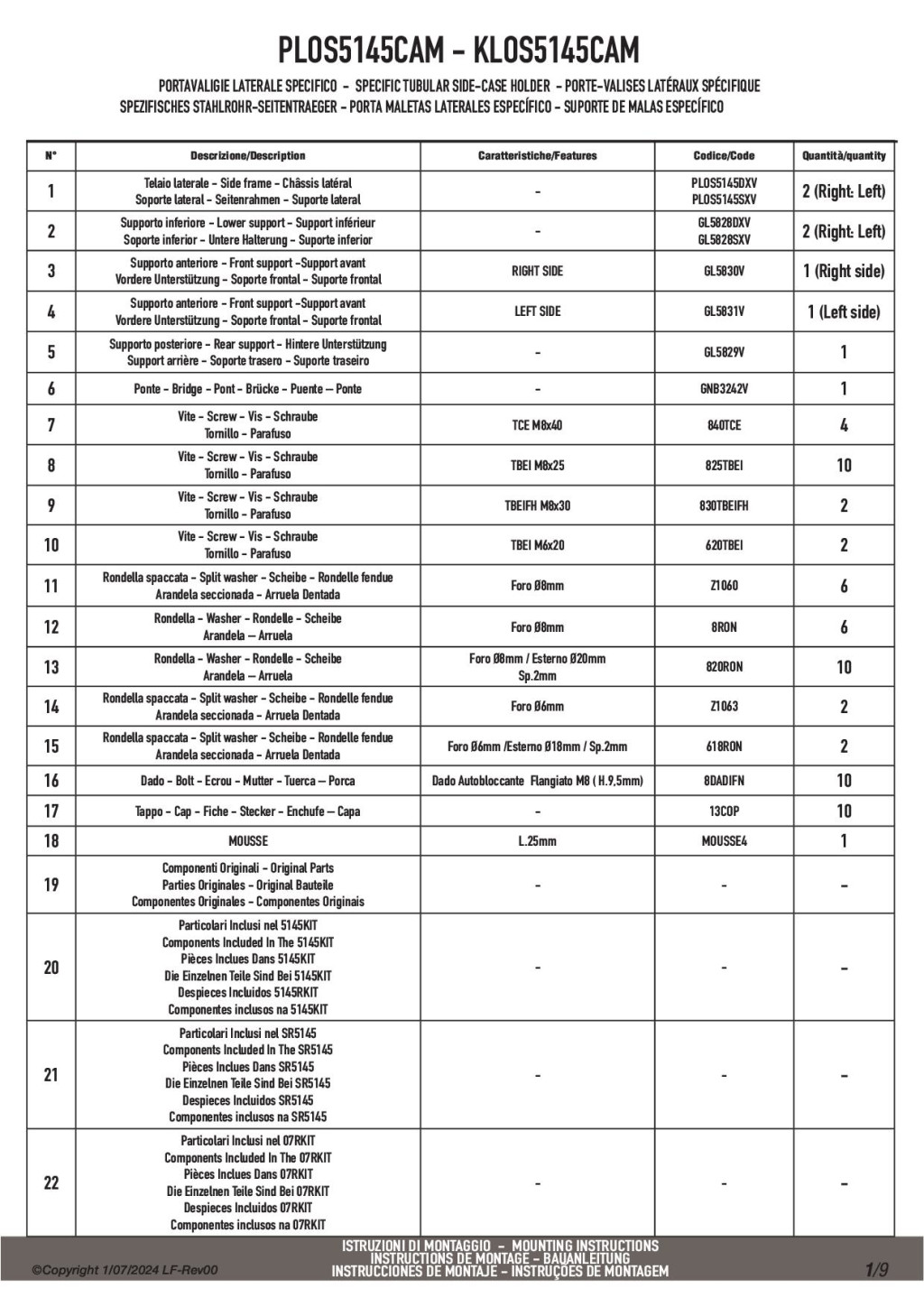 Ez az oldaldoboztartó csak akkor szerelhető fel a motorra, ha van már felszerelve Givi/ Kappa hátsó doboztartó is.