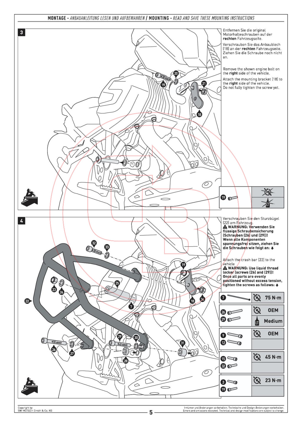 Az SW-Motech bukócső megbízható védelmet nyújt motorod számára, ha váratlan helyzet adódik. Robusztus, acélcsövekből készült, így hatékonyan óvja a blokkot és az érzékeny alkatrészeket esés vagy eldőlés esetén. A precízen tervezett kialakításnak köszönhetően tökéletesen illeszkedik a gyári felfogatási pontokhoz, így a szerelés egyszerű. A porfestett felület tartós, ellenáll az időjárásnak és a korróziónak, miközben sportosan elegáns megjelenést ad a motornak. Válaszd az SW-Motech bukócsövet, ha biztonságot, tartósságot és stílust szeretnél minden motoros kaland során.