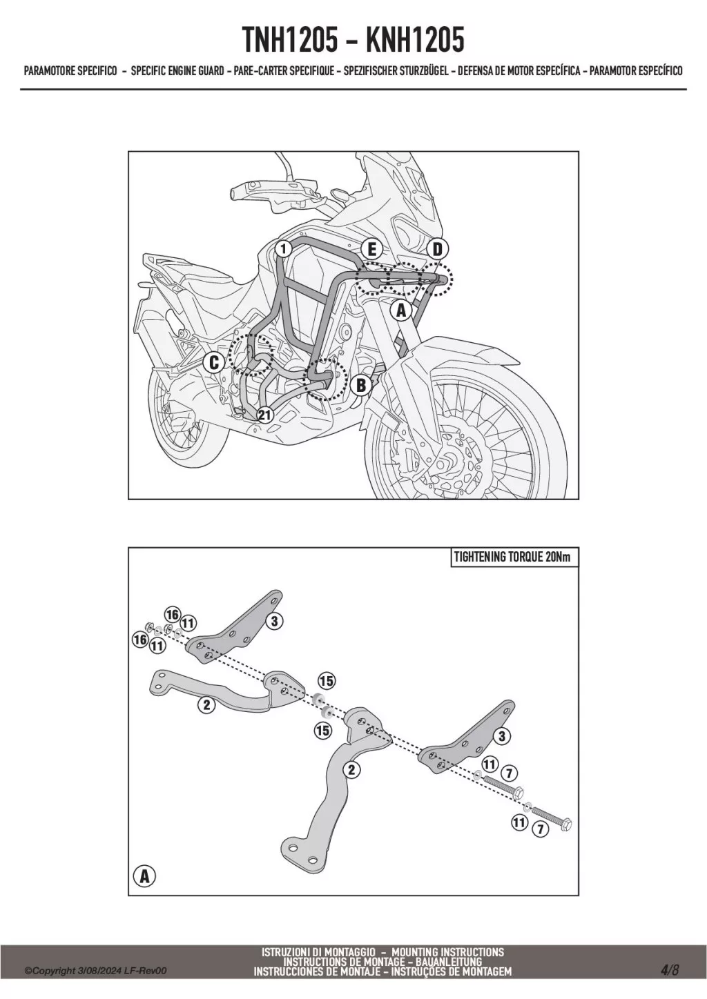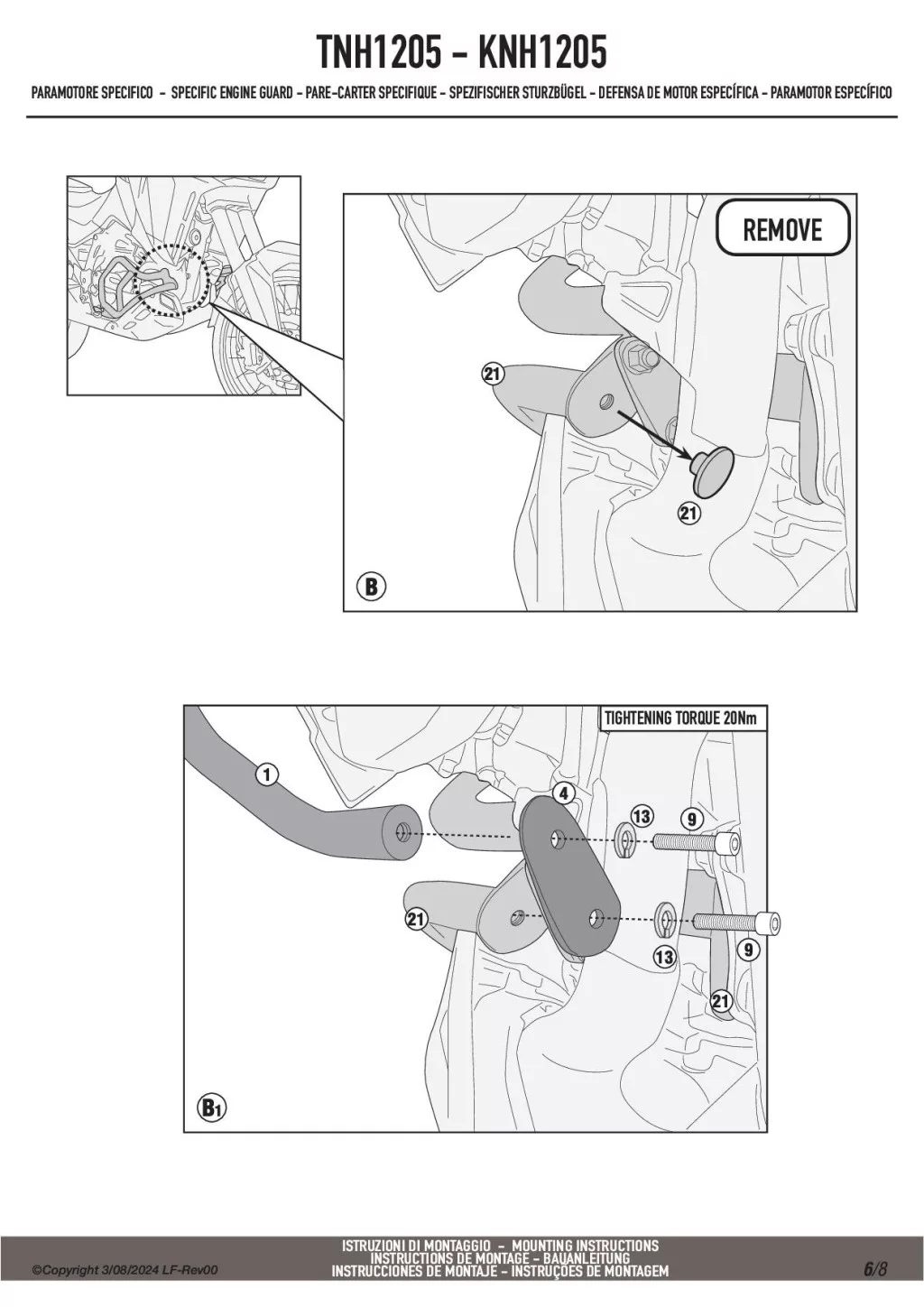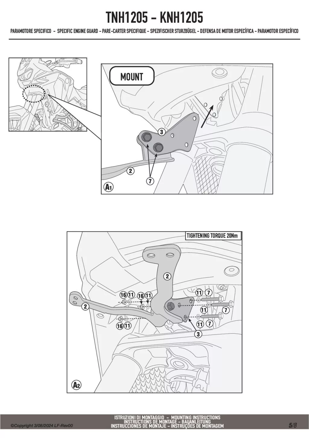 A Givi TNH1205 felső bukócső nem szerelhető fel önmagában, csak ha Givi vagy Kappa alsó bukócső már van felszerelve!