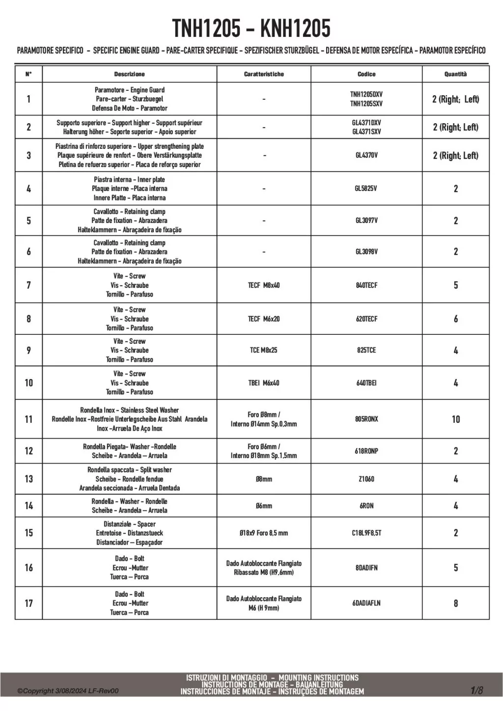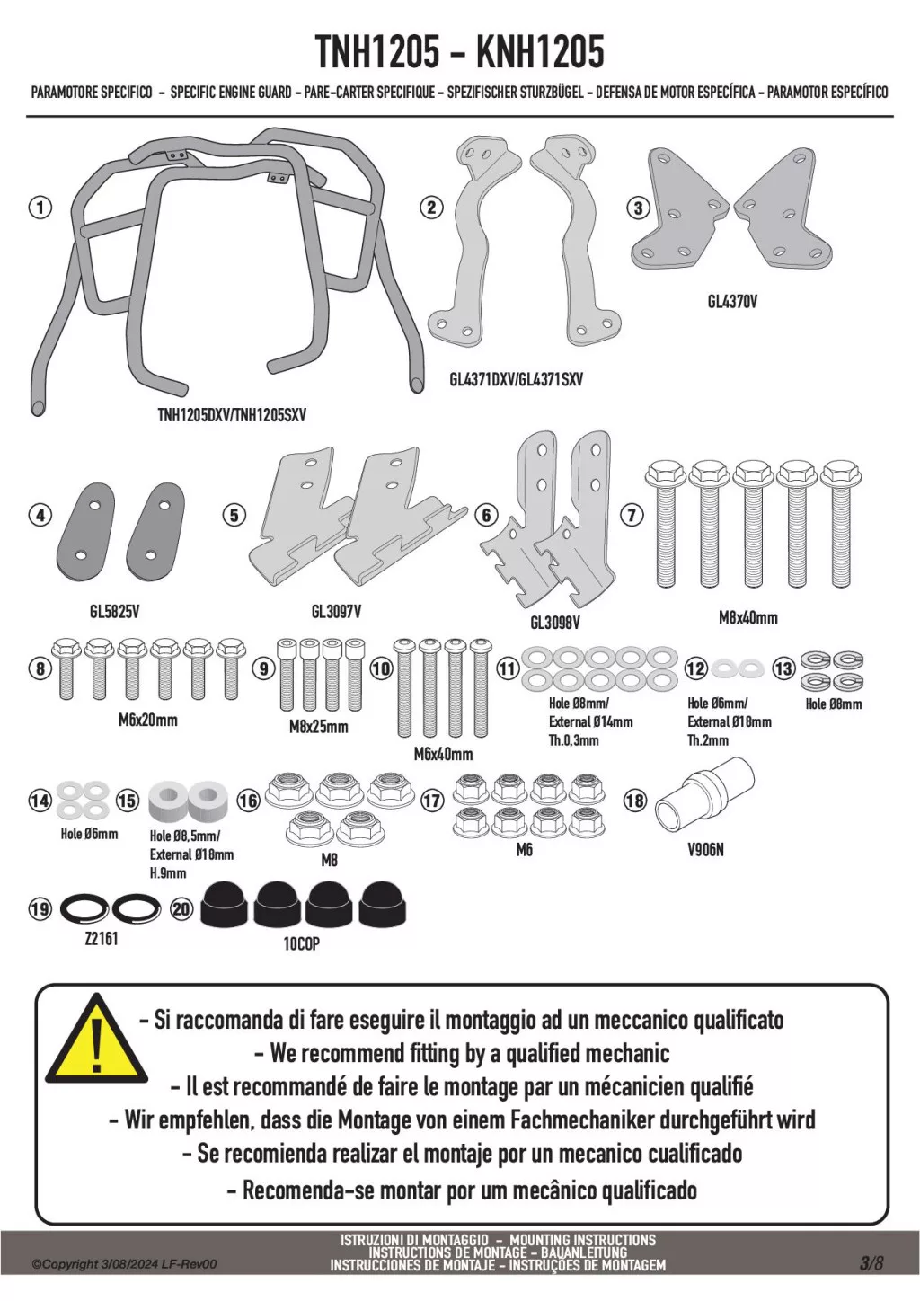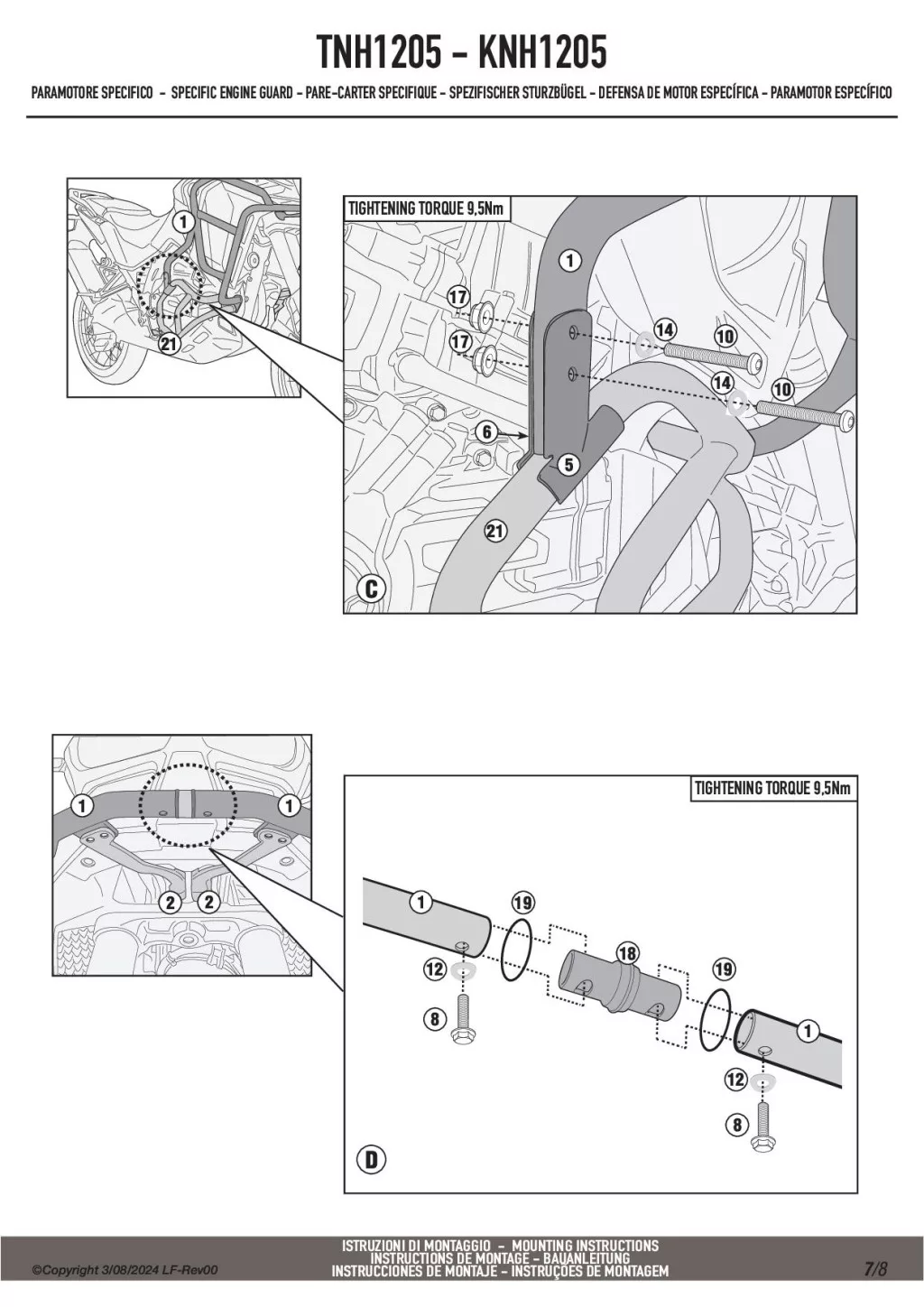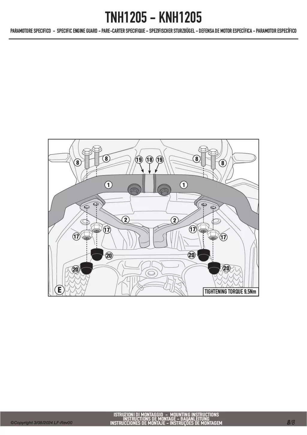 A Givi TNH1205 felső bukócső nem szerelhető fel önmagában, csak ha Givi vagy Kappa alsó bukócső már van felszerelve!